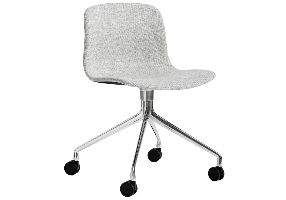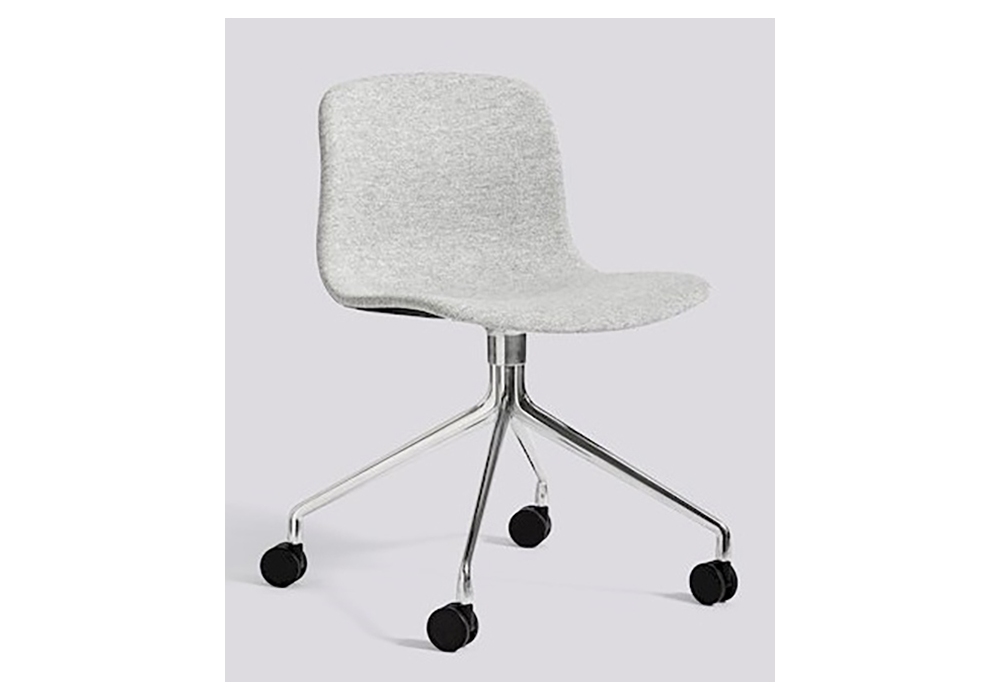 About a Chair AAC 15 diseñada por Hee Welling & Hay para Hay es una silla con carcasa de polipropileno moldeado por inyección totalmente tapizada sin reposabrazos y base giratoria de 4 radios en fundición de aluminio. con ruedas negras y brillantes o de goma blanca para la versión con base blanca. Disponible con diferentes acabados.
