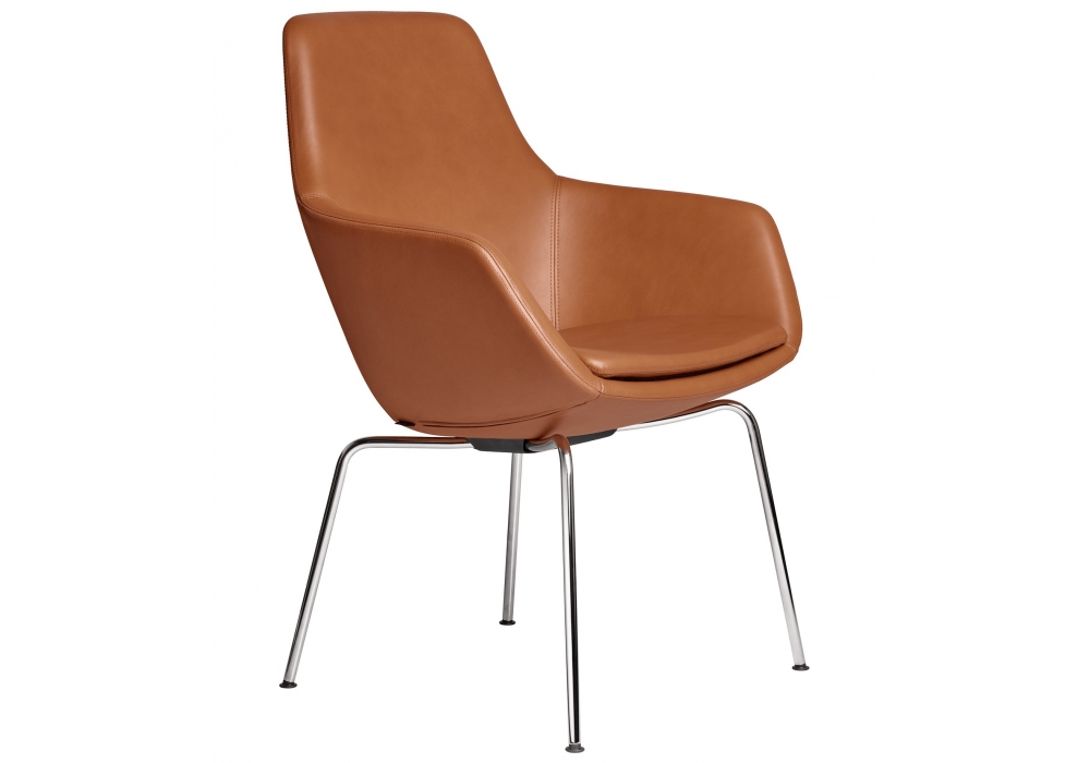 Little Giraffe™ diseñada por Arne Jacobsen para Fritz Hansen es una silla con patas en cromo o con barnizado en polvo negro y revestimiento disponible en tejido o piel.
