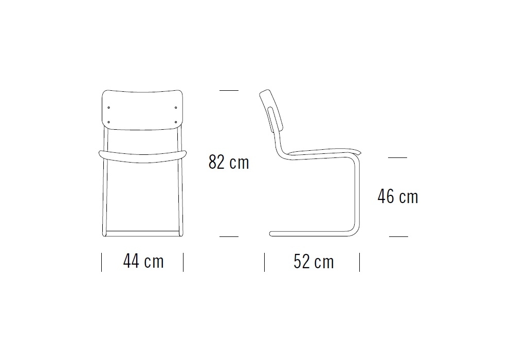 S 43 / S 43 ST diseñada por Mart Stam para Thonet es una silla con estructura cromada y asiento/respaldo en madera de haya.
