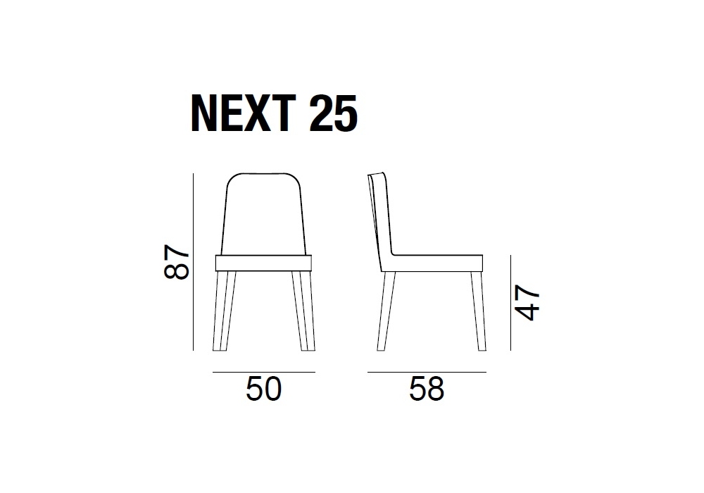 Next 25 diseñada por Paola Navone para Gervasoni es una silla en nogal o haya, asiento y respaldo acolchados en espuma de poliuretano. Revestimiento removible con corte y costura de costuras y fondo libre.
