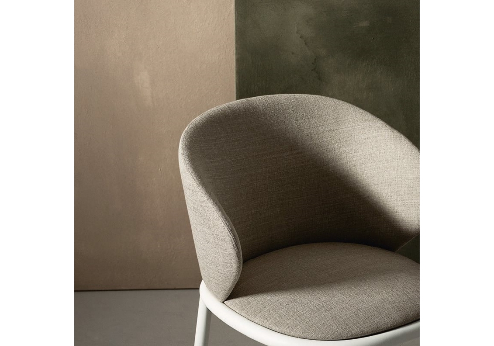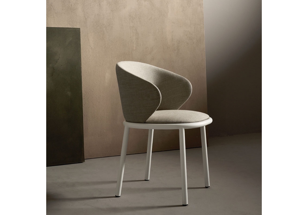Mun diseñada por Mario Ferrarini para Desalto es una silla con estructura en acero tubular disponible en diferentes acabados. Asiento acolchado y tapizado en tejido o piel.