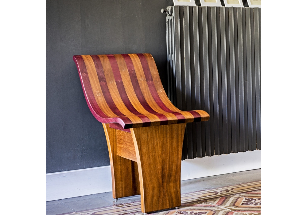 Karékla por Salvatore Longo para Ornythos es una silla de madera. El asiento está formado alternando dos especies de madera iroko y morada.