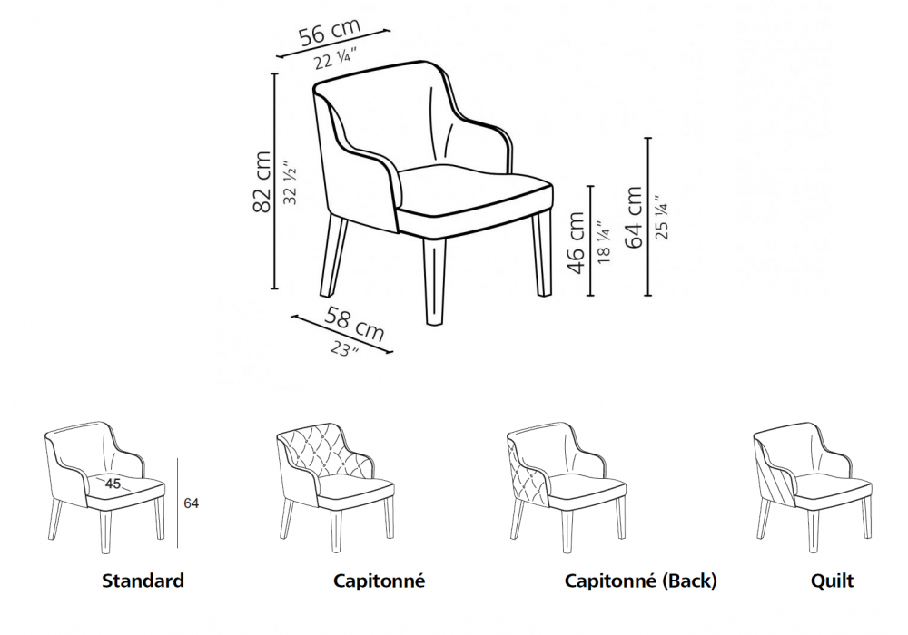 Royale diseñada por Castello Lagravinese Studio para Casamilano es una silla con estructura en haya maciza y contrachapado curvado. Relleno en espuma de poliuretano y revestimiento en diferentes tejidos o pieles. Patas en roble macizo teñido ébano o tapizado.