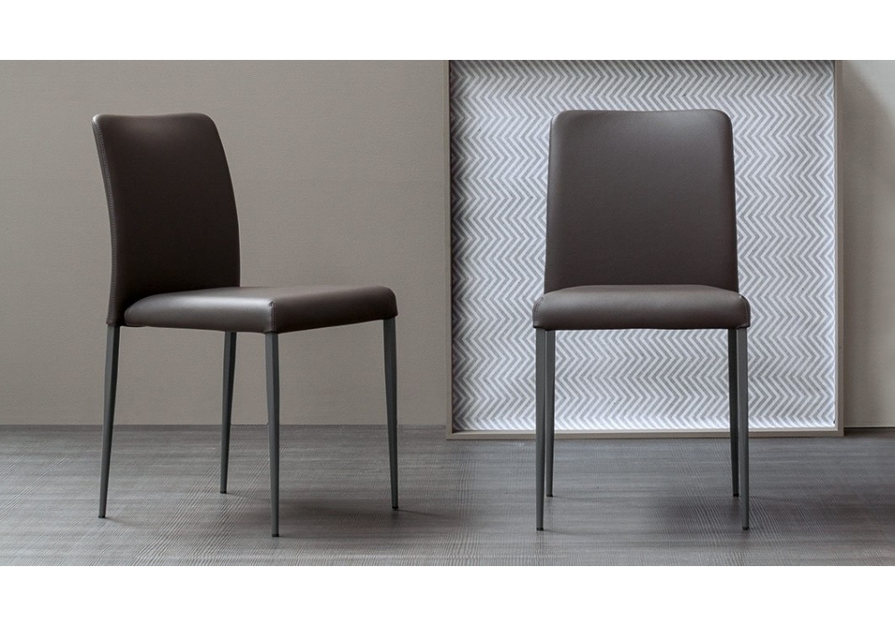 Deli diseñada por Bonaldo es una silla tapizada con revestimiento en piel o ecopiel. Patas en metal barnizado, disponible en diferentes acabados o completamente recubiertas.