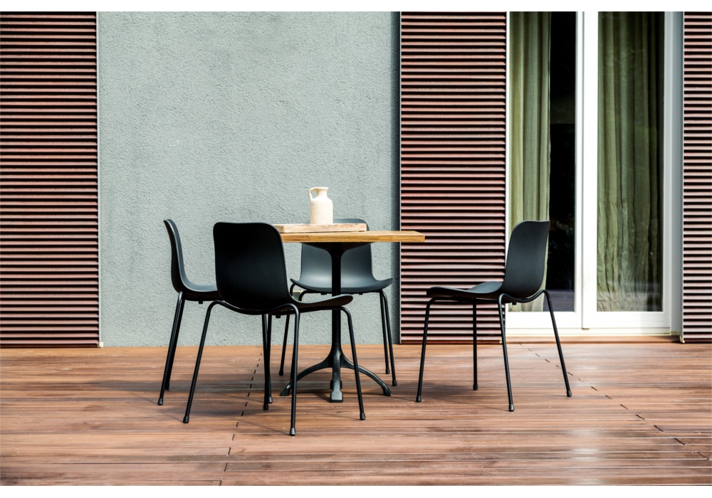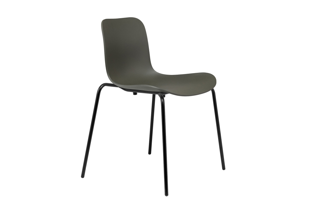 Langue Stack diseñada por Rune Krøjgaard y Knut Benedik Humlevik para Norr11 es una silla con una base de latón o de aluminio con recubrimiento de polvo negro y la carcasa de polipropileno en diferentes acabados.
