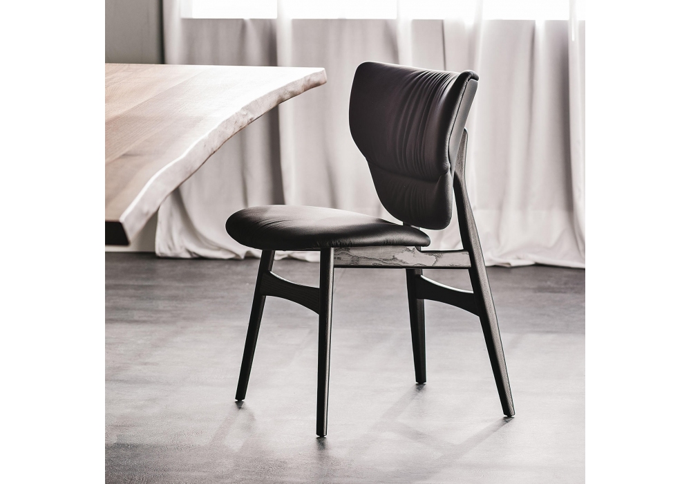 Dumbo diseñada por Archirivolto para Cattelan Italia es una silla con estructura en fresno y revestimiento de asiento y respaldo en diferentes acabados.