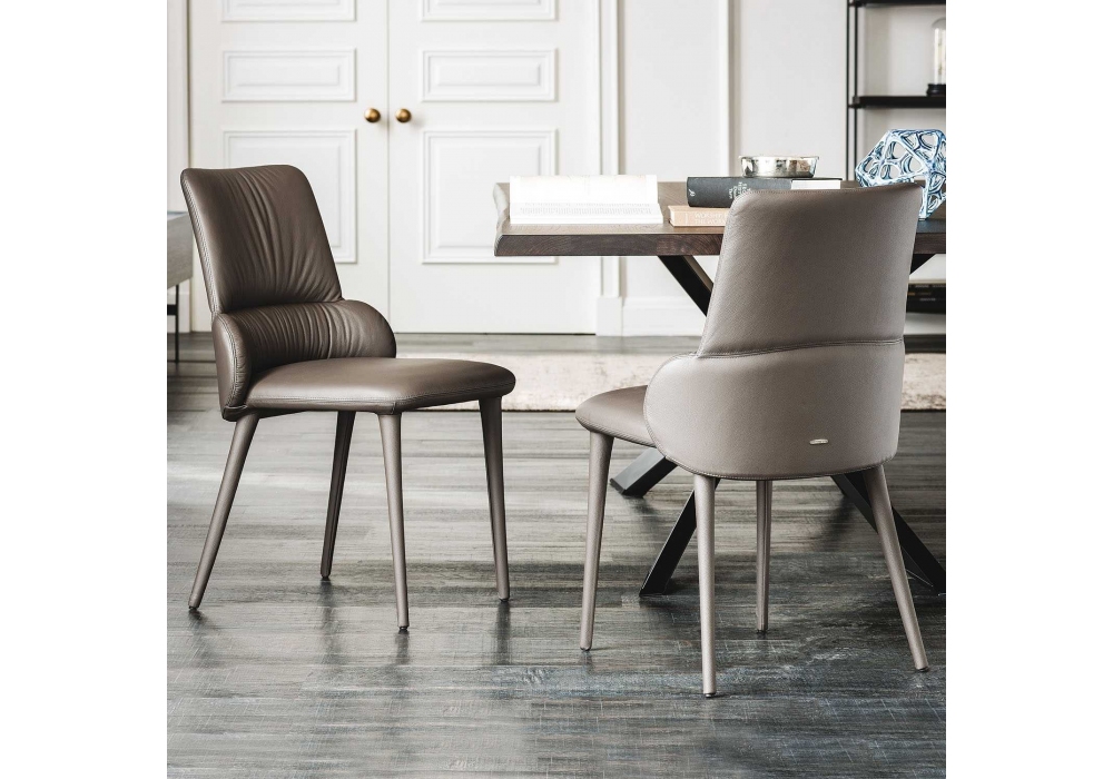 Ginger diseñada por Archirivolto para Cattelan Italia es una silla con estructura en acero. Cubierto completamente en piel, piel ecológico o tejido.