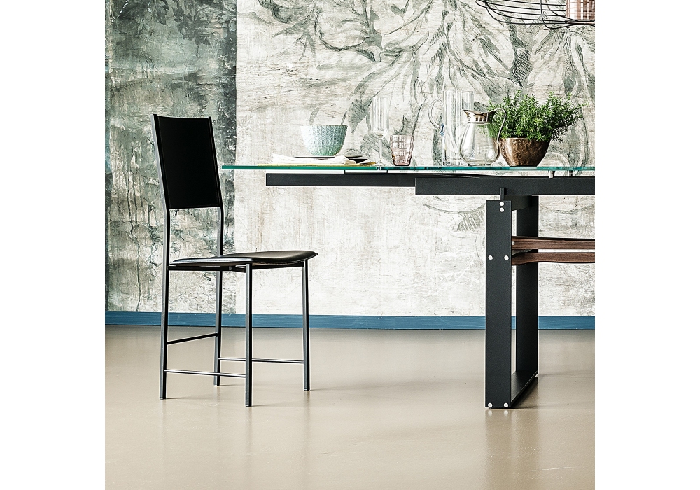 Alessia diseñada por Ca Nova Design para Cattelan Italia es una silla con estructura en acero y revestimiento de asiento y respaldo en cuero. Disponible en varios acabados.