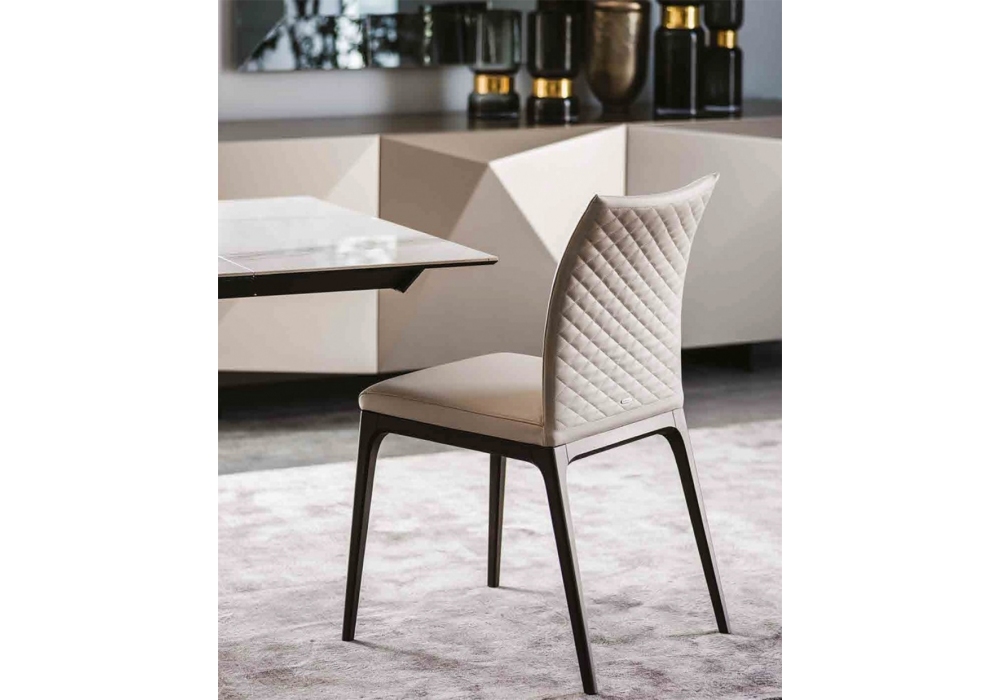 Arcadia Couture diseñada por Paolo Cattelan para Cattelan Italia es una silla con base en haya y revestimiento de asiento y respaldo en piel o piel ecológico. Disponible en 2 modelos. Respaldo acolchado.