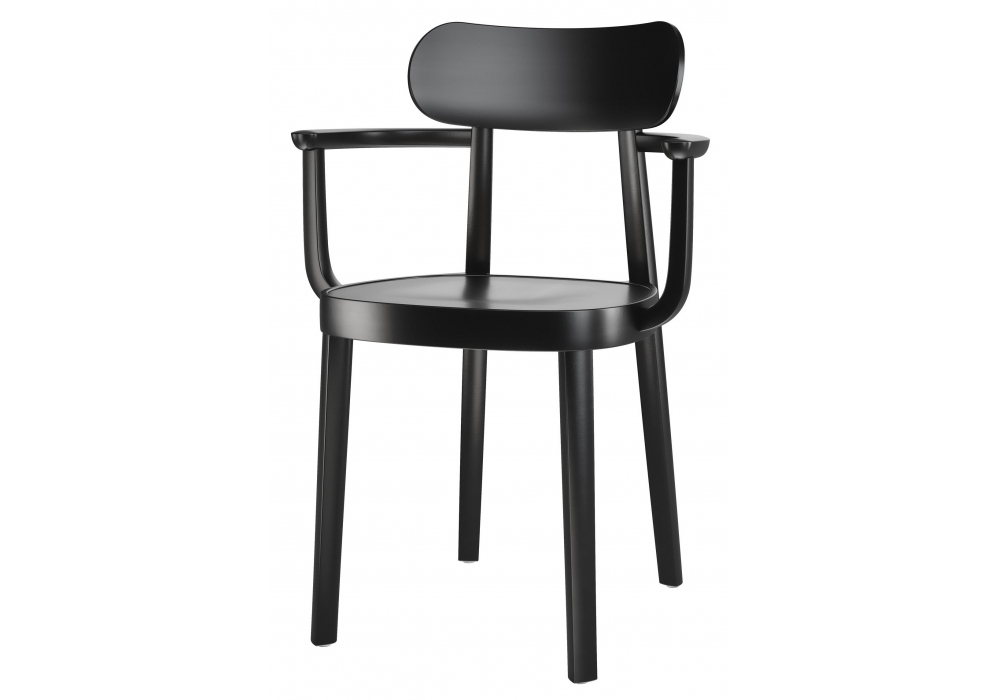 118 M / MF diseñada por Sebastian Herkner para Thonet es una silla con estructura en madera maciza de haya, en diferentes acabados. Asiento en forma de madera contrachapada. La silla también está disponible con o sin reposabrazos.