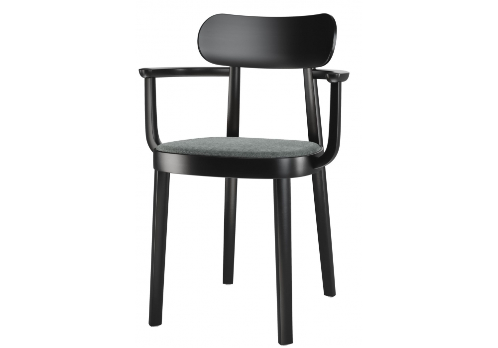 118 SP / SPF diseñada por Sebastian Herkner para Thonet es una silla con estructura en madera maciza de haya, en diferentes acabados. Asiento tapizado en tela, piel o cuero. La silla también está disponible con o sin reposabrazos.
