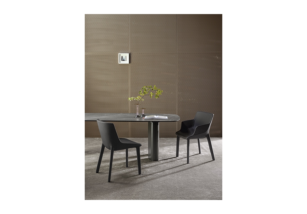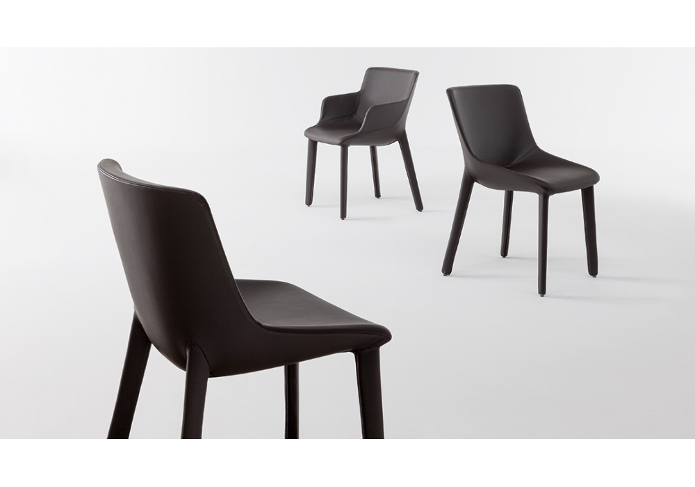 Artika Covered diseñada por Gino Carollo para Bonaldo es una silla completamente tapizada en piel, ecopiel o tejido. Disponible en 2 modelos.