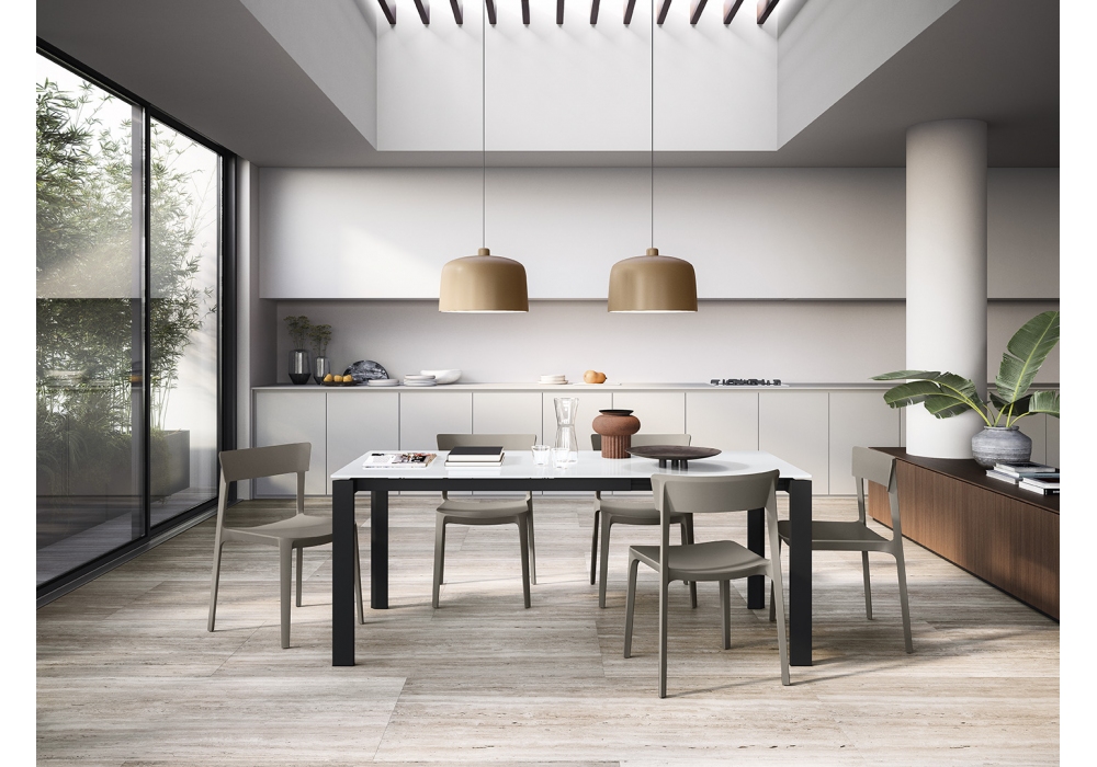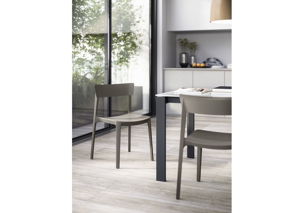 Skin diseñada por Archirivolto para Calligaris es una silla fabricada en polipropileno en negro mate, también apta para exterior.