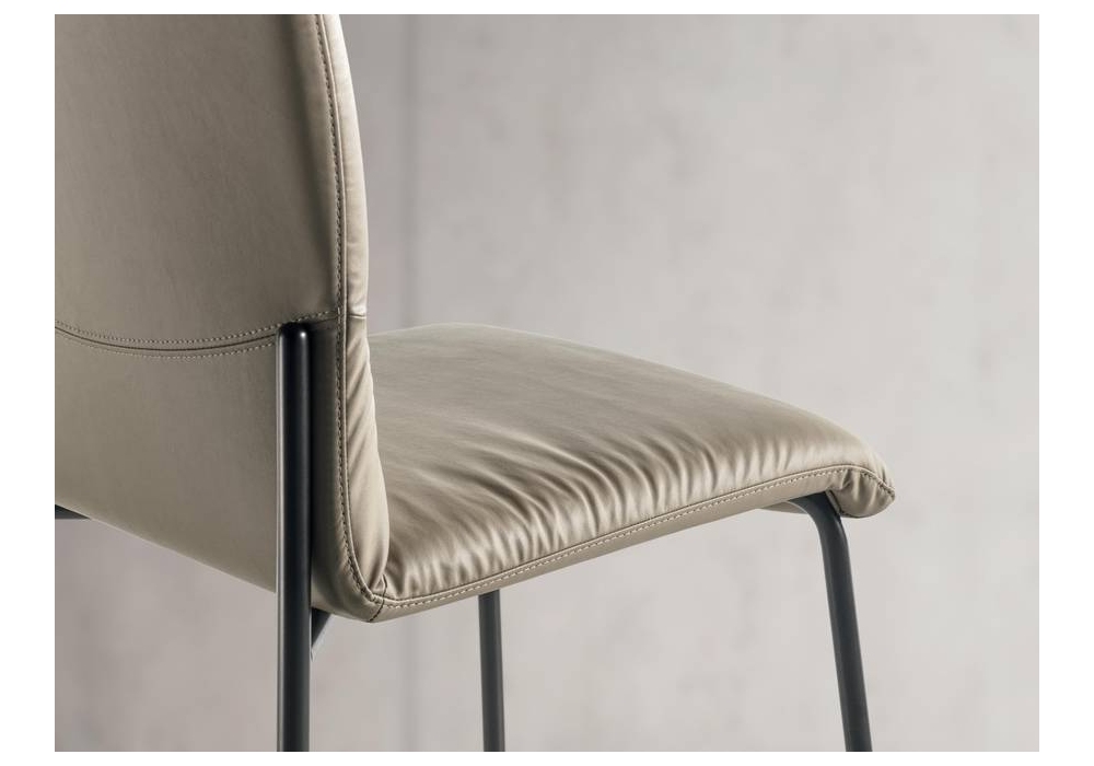 Woop diseñada por Archirivolto e Cristian Gori para Lago es una silla con estructura de acero pintado y asiento tapizado en tela o cuero.