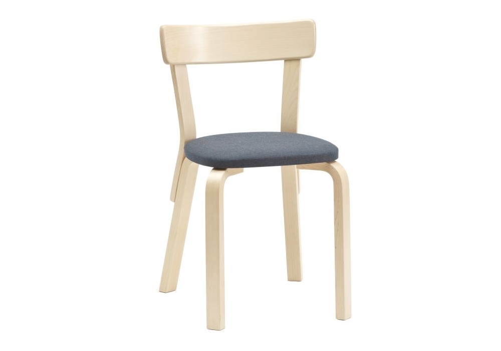 Chair 69 diseñada por Alvar Aalto para Artek es una silla realizada con tapizado de asiento en tela o piel. Patas y respaldo lacados. Disponible en diferentes acabados.