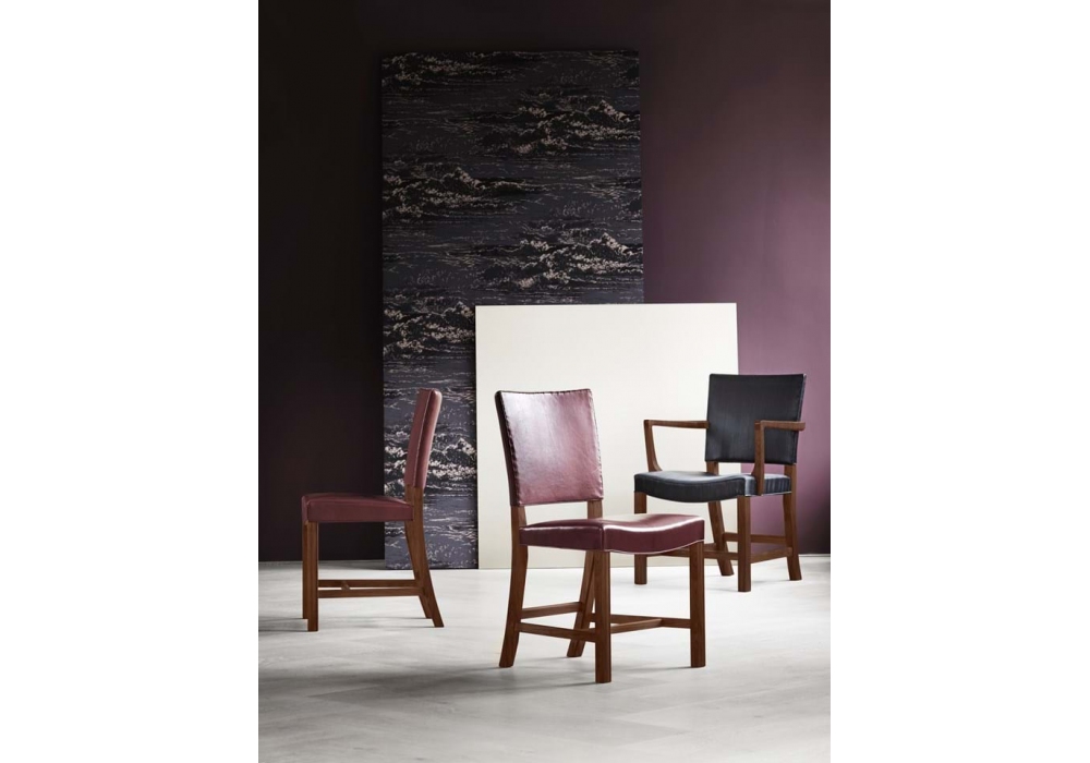 KK39490 The Red Chair Small diseñada por Kaare Klint para Carl Hansen & Søn es una silla de madera maciza en roble o nogal disponible en diferentes acabados. Tapicería disponible en cuero.