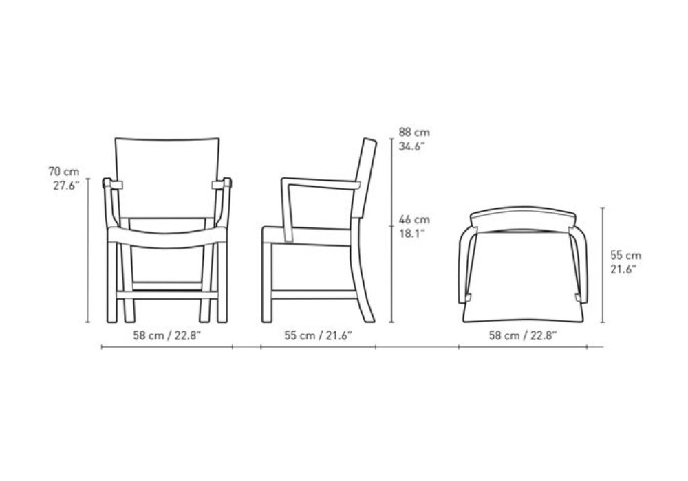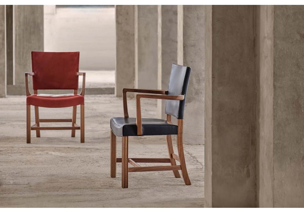 KK37581 The Red Armchair Large diseñada por Kaare Klint para Carl Hansen & Søn es una silla con reposabrazos, estructura de madera maciza en roble o nogal disponible en diferentes acabados. Tapicería disponible en cuero.