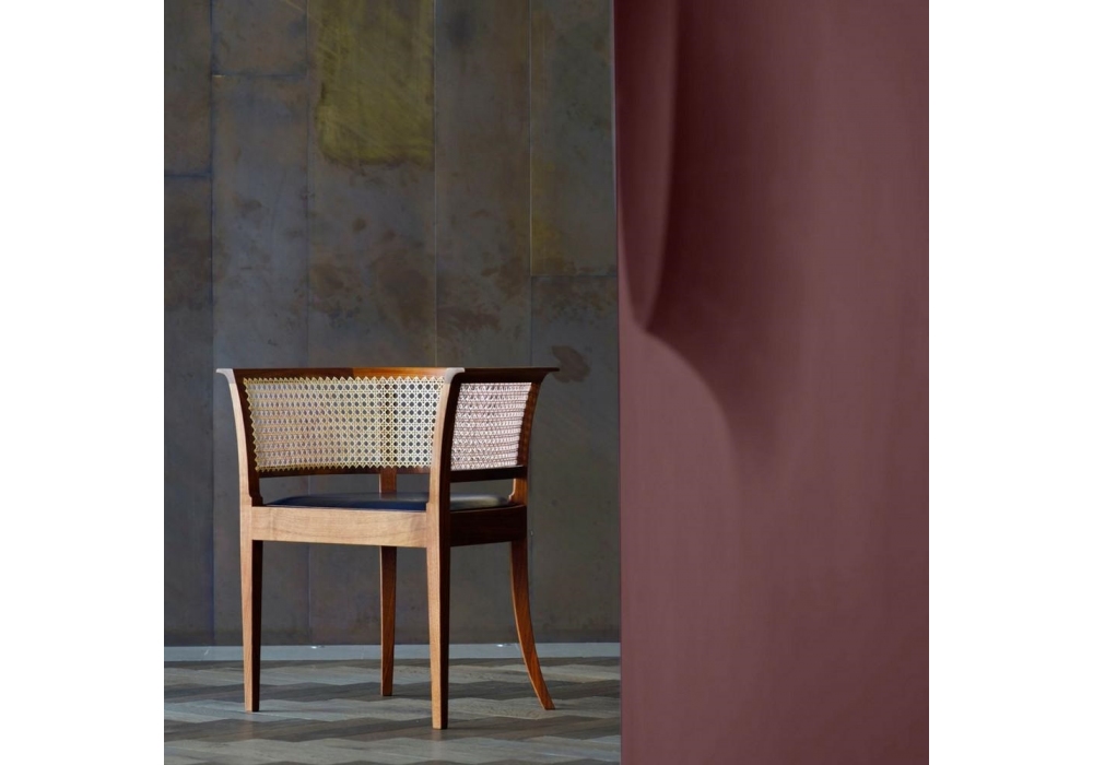 KK96620 The Faaborg Chair diseñada por Kaare Klint para Carl Hansen & Søn es una silla con estructura de madera: roble, nogal o caoba disponible en diferentes acabados. Apoyabrazos en paja de Viena tejida a mano. Tapicería de asiento disponible en piel.