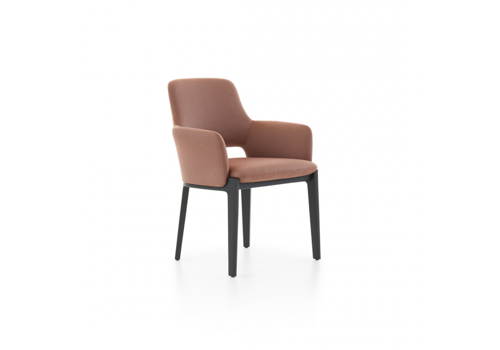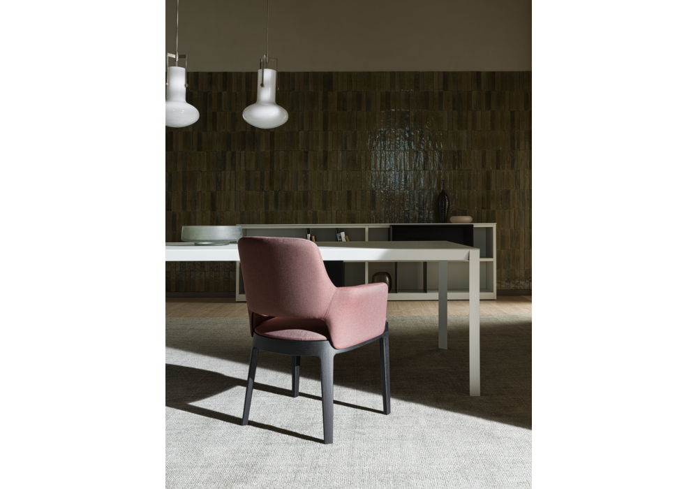 Devon diseñada por Rodolfo Dordoni para Molteni&C es una silla con reposabrazos realizada con tapizado en tela o cuero y base en madera maciza. Disponible en diferentes acabados y 2 versiones.
