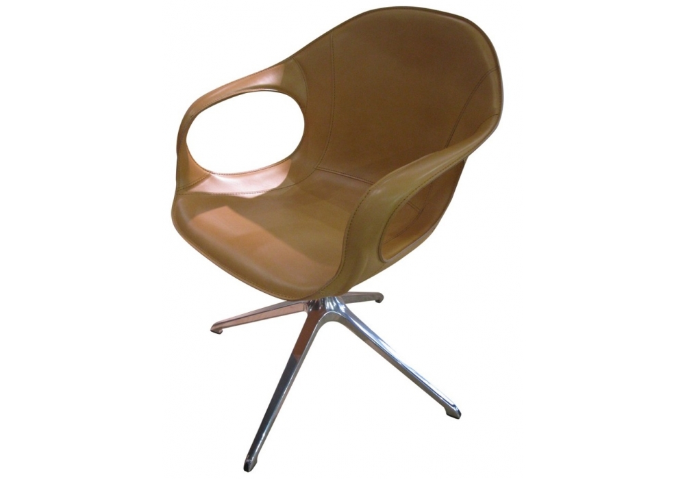 Elephant diseñada por Eva Paster & Michael Geldmacher para Kristalia es una silla sobre trìpode en aluminio disponible en diferentes acabados y carcasa de poliuretano revestida en cuero, cuero piel flor o tejido.