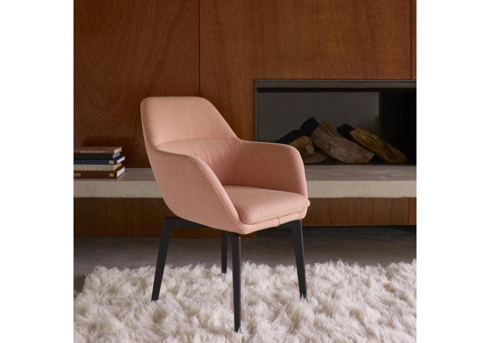Amédée diseñada por Marie Christine Dorner para Ligne Roset es una silla con base en haya maciza negra o teñida antracita. Respaldo y apoyabrazos en espuma de poliuretano inyectada. Asiento en espuma de poliuretano Bultex de alta resiliencia. Revestimiento disponible en tejido o piel.