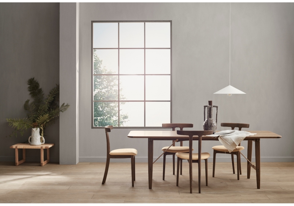 OW58 T - Chair diseñada por Ole Wanscher para Carl Hansen & Søn es una silla con estructura en roble macizo o nogal en diferentes acabados. Tapicería disponible en tela o piel.