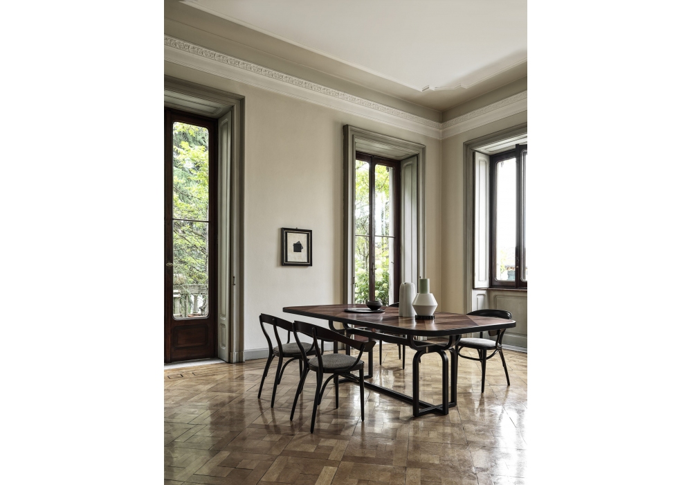 Bistrotstuhl diseñada por Nigel Coates para Gebrüder Thonet Vienna es una silla tapizada realizada en haya curvada, asiento y estructura disponible en diferentes acabados.