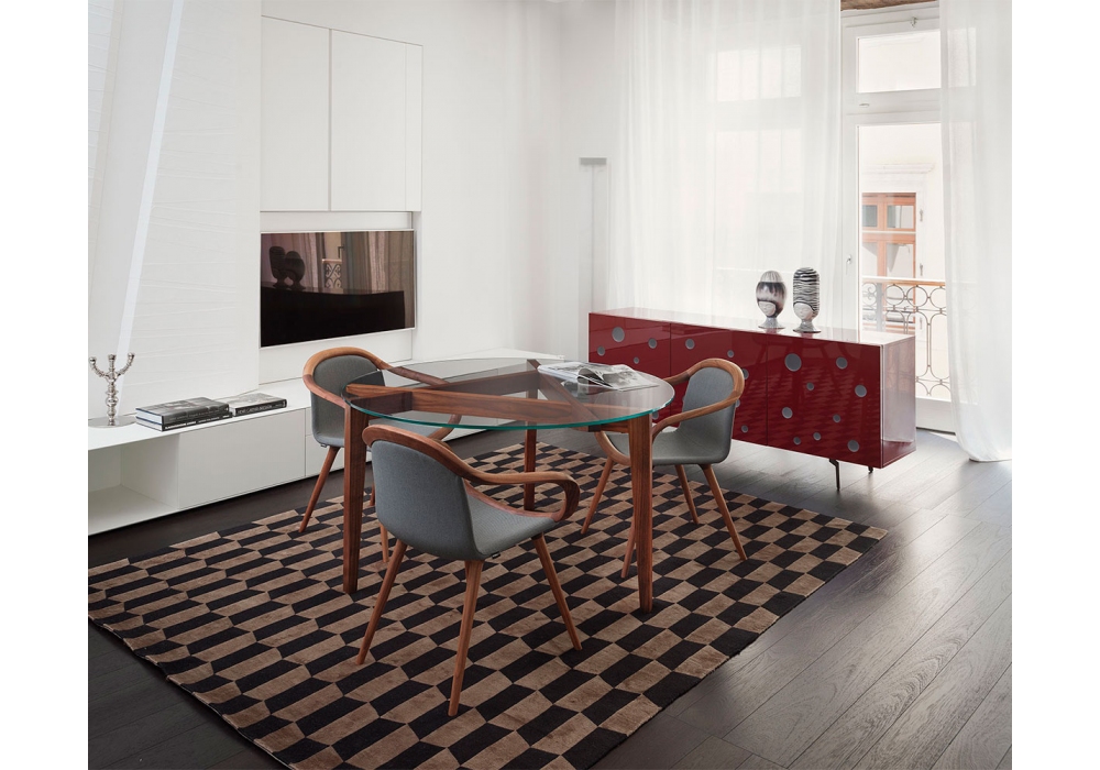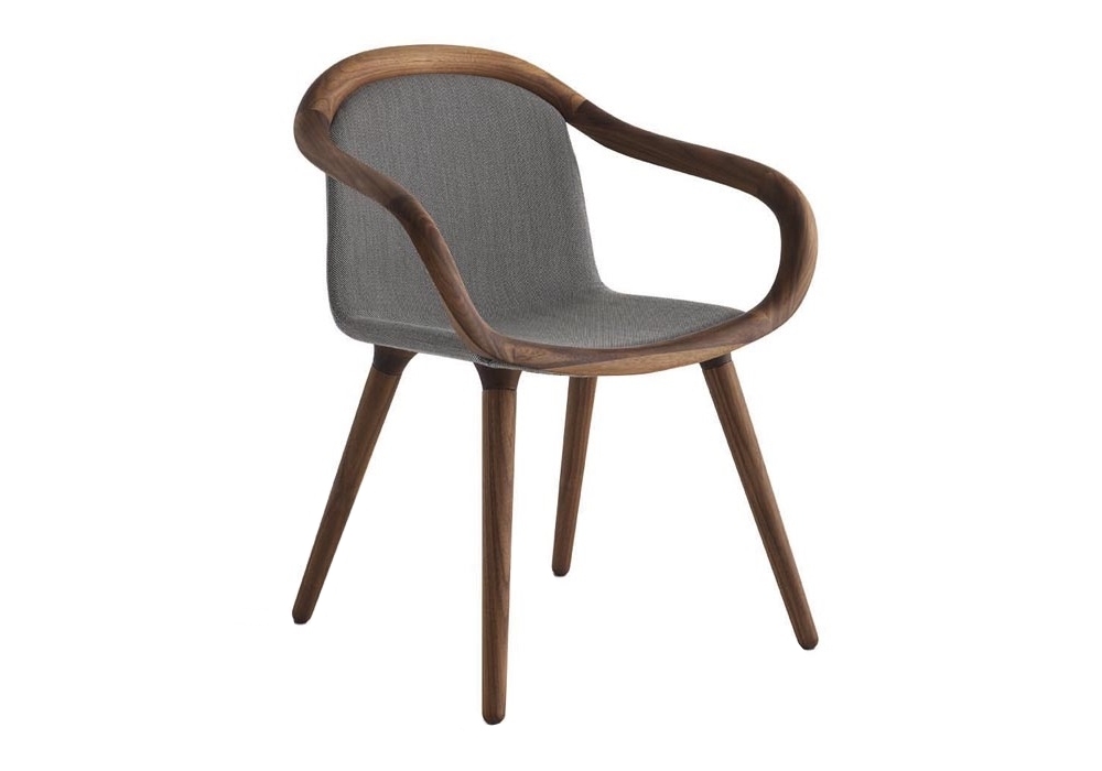 Ginevra diseñada por Studio Balutto para Casamania & Horm es una silla realizada con estructura en nogal canaletto macizo. Asiento y respaldo acolchados y tapizados en tela, ecopiel o piel.