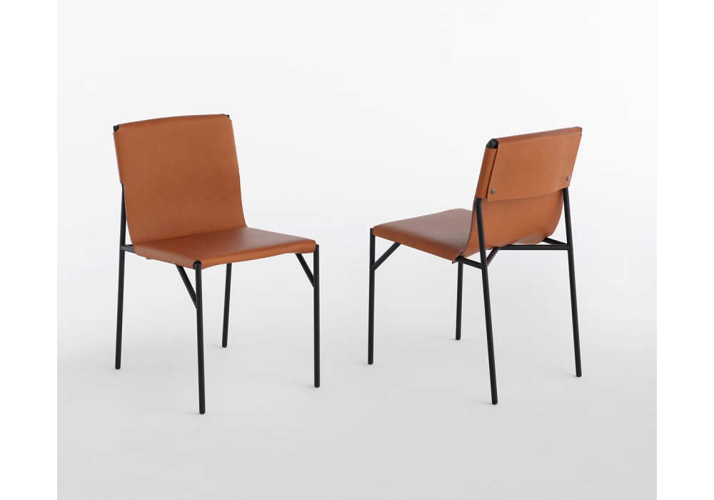 Tout le Jour diseñada por Marc Thorpe para Casamania & Horm es una silla realizada con una estructura portante en tubo de metal pintado de negro y tapizado en piel. Disponible en diferentes acabados.