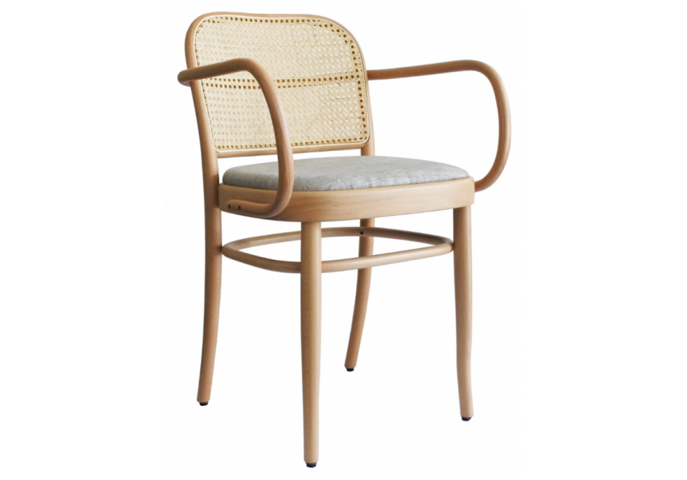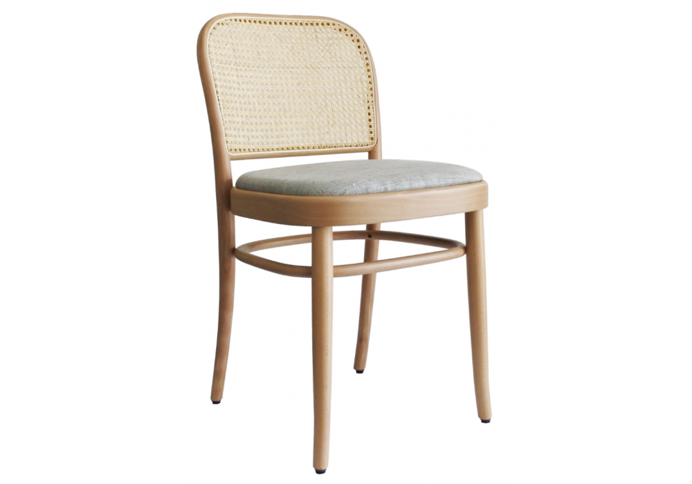N. 811 diseñada por Josef Hoffmann para Gebrüder Thonet Vienna es una silla realizada en haya curvada, disponible en diferentes acabados. Asiento tapizado con tapizado en tela o piel, respaldo en paja Viena o con tapizado en el mismo acabado que el asiento.