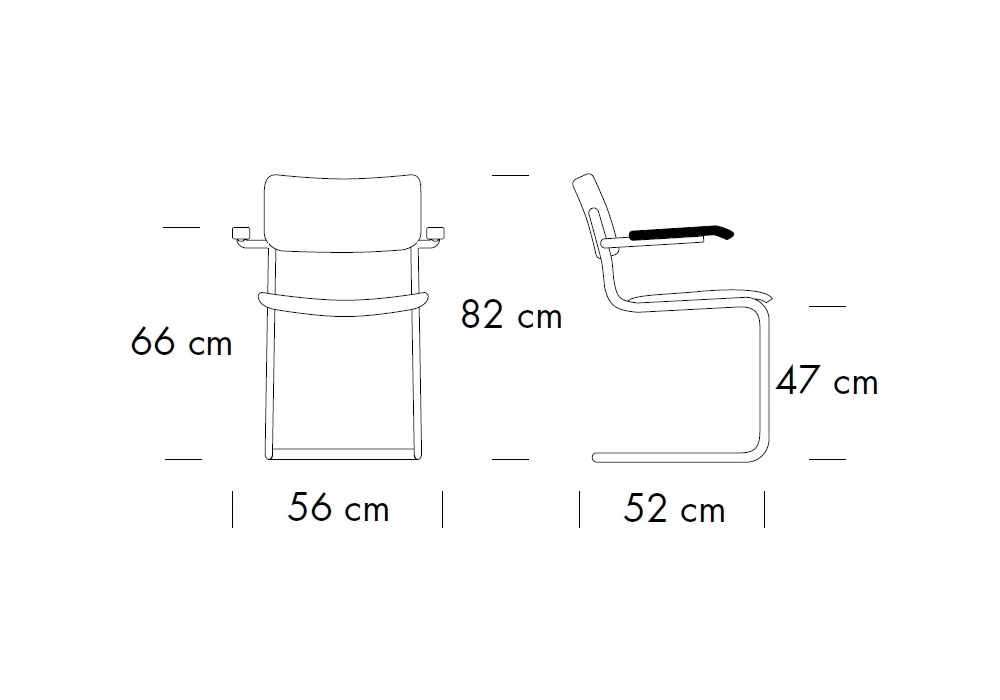 S 43 PVF / PVFST diseñada por Mart Stam (copyright artístico) para Thonet es una silla tipo trineo con estructura de tubo de acero cromado. Asiento y respaldo en haya teñida, disponible en diferentes acabados. Acolchado frontal con tapicería de tela, piel o cuero. La silla también está disponible en dos versiones.