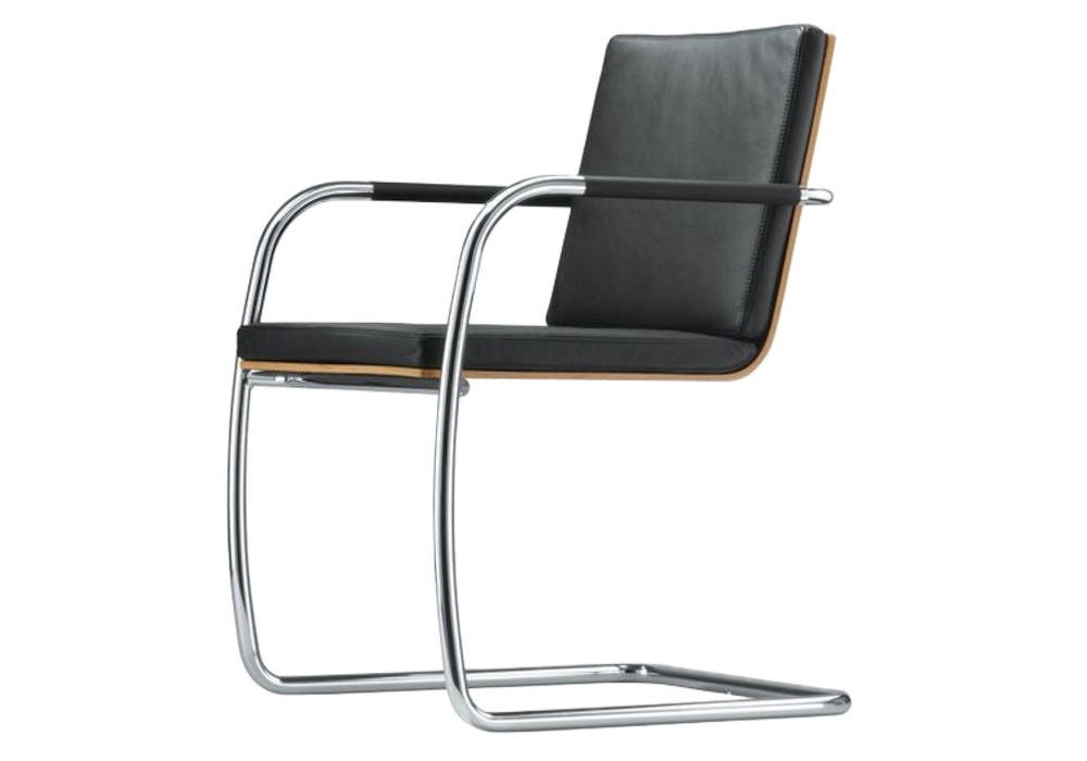 S 60 diseñada por Glen Oliver Löw para Thonet es una silla patín con estructura de tubo de acero cromado. Carcasa y respaldo del asiento en madera contrachapada perfilada, acabado superficial en haya teñida en diferentes acabados. Cómodo acolchado con tapicería de tela, piel o cuero. Apoyabrazos en elastómero. La silla también está disponible en dos versiones.
