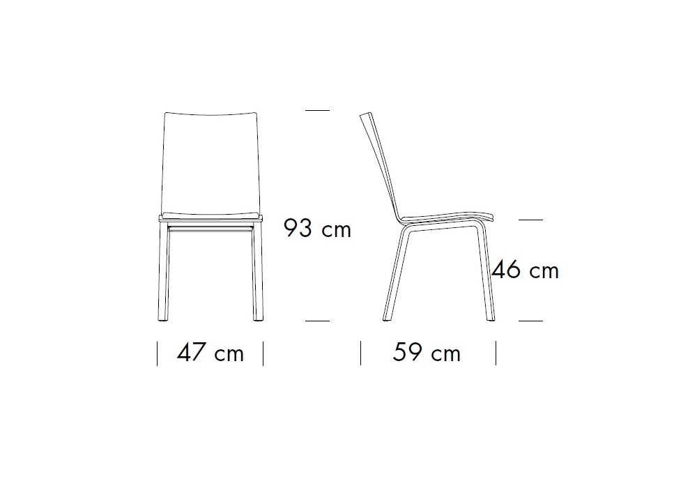 162 - 164 SP diseñada por Delphin Design para Thonet es una silla con estructura en haya teñida disponible en dos colores. Asiento tapizado con tapicería de tela, cuero o cuero. La silla también está disponible en dos tamaños.