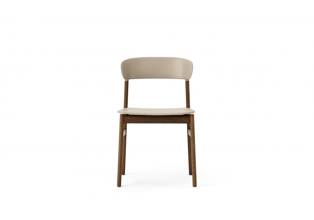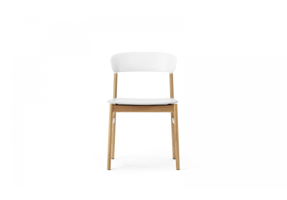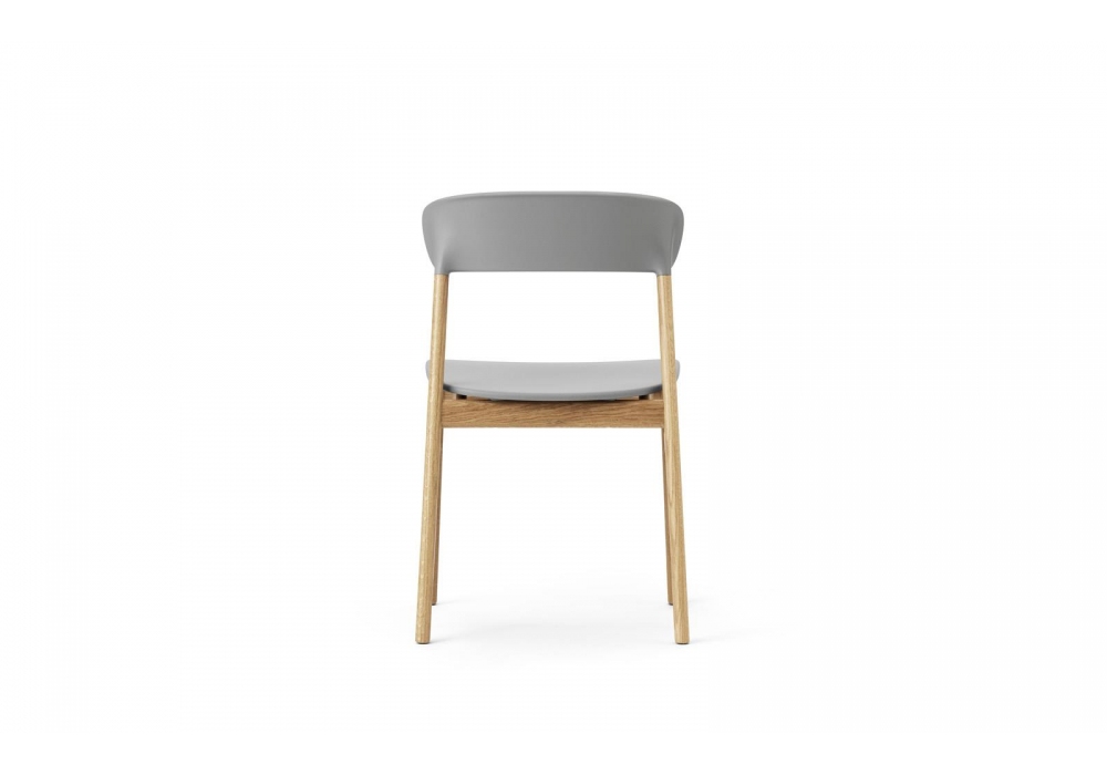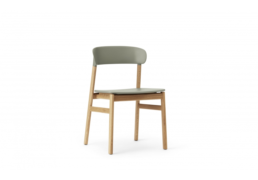 Herit, diseñada por Simon Legald para Normann Copenhagen, es una silla, estructurada en polipropileno en combinación con roble, en los acabados; gris, blanco, negro, arena o verde polvoriento. Herit está disponible en dos versiones diferentes, con estructura y patas en roble o roble ahumado.