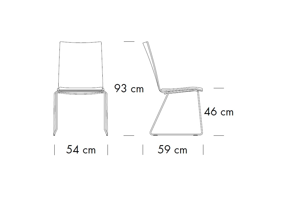 S 184 PST diseñada por Delphin Design para Thonet es una silla en alambre de acero cromado y pies de plástico. Asiento y respaldo en contrachapado de haya perfilado en diferentes acabados, tapizados en tejido, piel o piel.