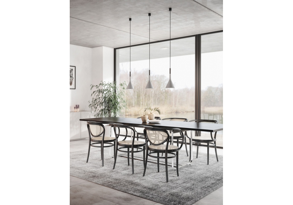 210 R diseñada por Gebrüder Thonet para Thonet es una silla con reposabrazos en madera curvada y pies de plástico. Asiento y respaldo en ratán tejido. Estructura en haya, disponible en diferentes acabados.