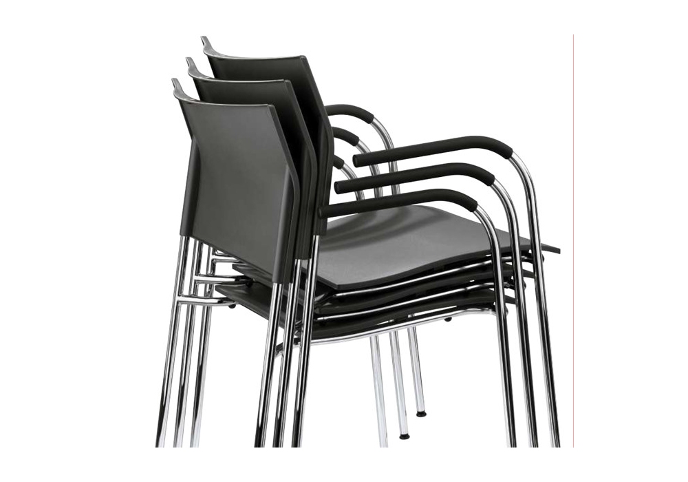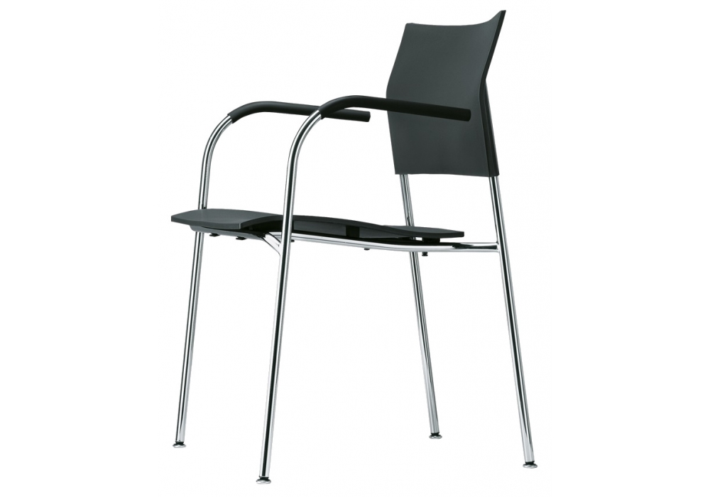S 360 F diseñada por Delphin Design para Thonet es una silla apilable con estructura en tubo de acero cromado y patas en plástico. Asiento y respaldo en polipropileno, disponible en dos colores. Reposabrazos en elastómero.