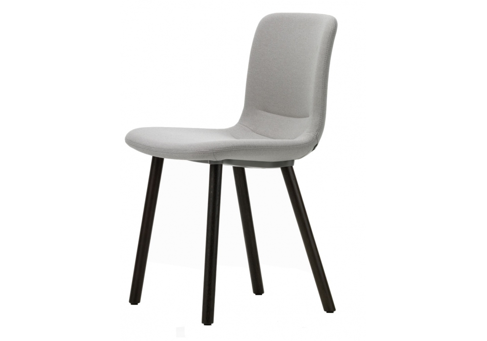 HAL Soft Wood diseñada por Jasper Morrison para Vitra es una silla realizada con carcasa en poliamida reforzada con fibra de vidrio, acolchado en espuma de poliuretano y tapizado en tejido. Base de madera no apilable en roble oscuro o natural.