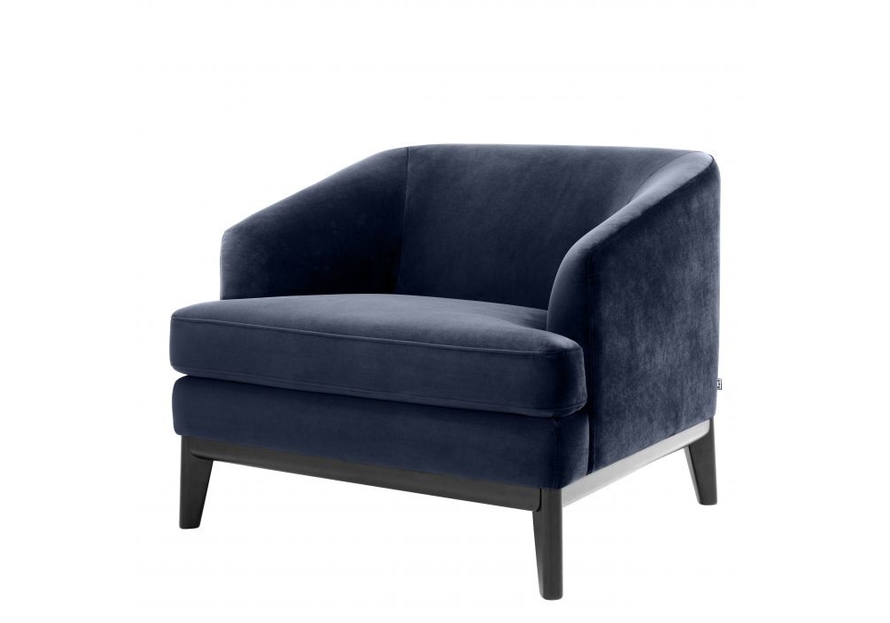 Chair Monterey diseñada por Eichholtz es una silla con brazos inclinados y tapizado en terciopelo Savona azul noche.