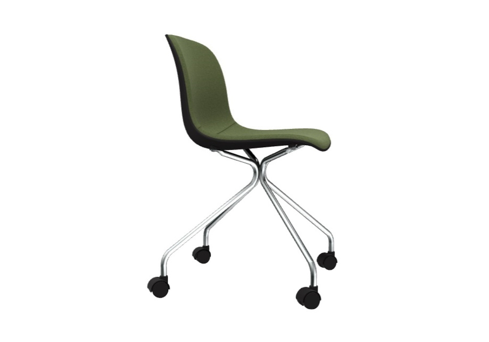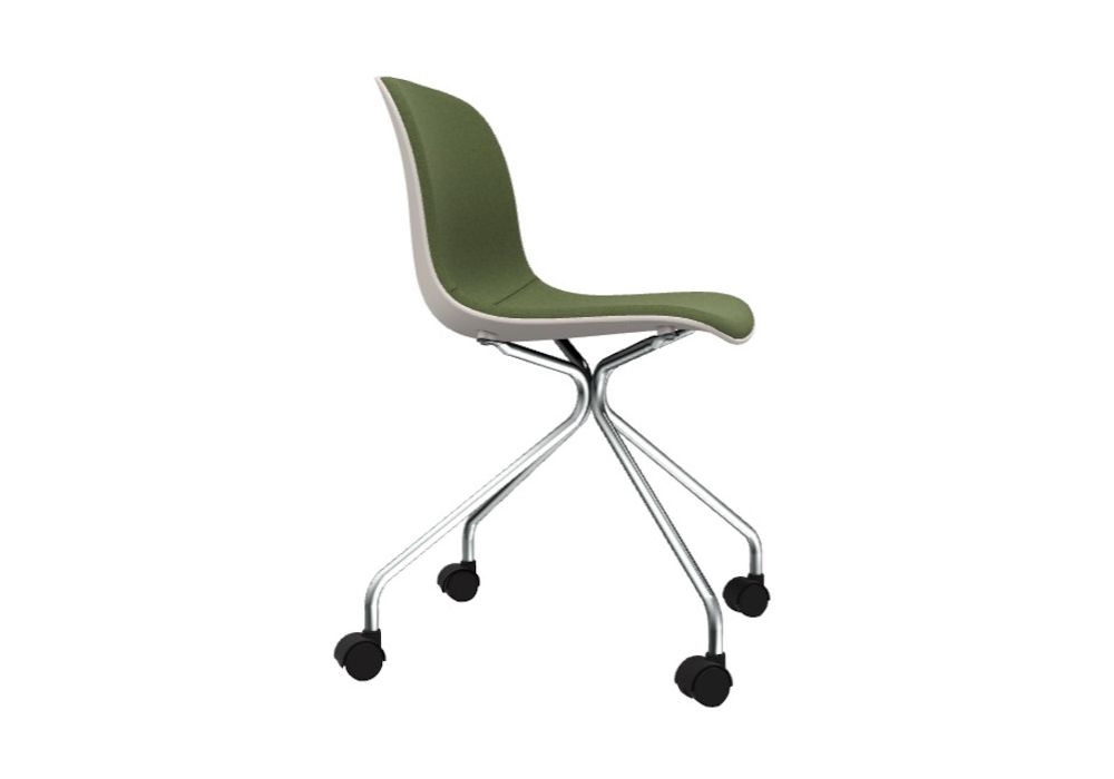 Troy 4 Star Wheels diseñada por Marcel Wanders para Magis es una silla de 4 radios, con ruedas, estructura en tubo de acero cromado o pintado, asiento trasero pintado. Asiento con frente acolchado en espuma de poliuretano ignífugo revestido en tejido o piel.
