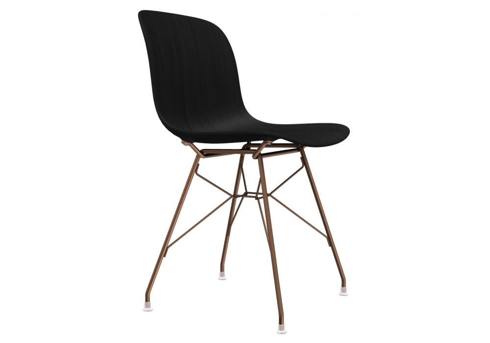 Troy Wireframe Beech diseñada por Marcel Wanders para Magis es una silla con asiento en contrachapado de haya, estructura en varilla de acero barnizado dorado, cobrizo o poliéster.