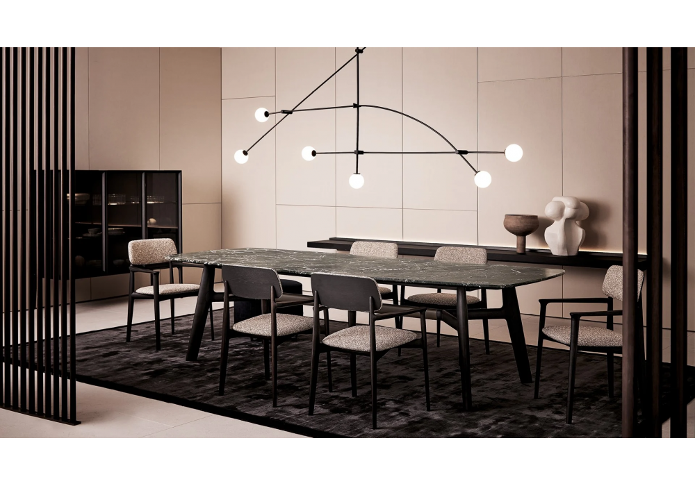 Curve diseñada por Emmanuel Gallina para Poliform es una silla con estructura en madera maciza, roble spessart u olmo negro. Asiento y respaldo en madera curvada en los mismos acabados que la estructura. Disponible con o sin reposabrazos.