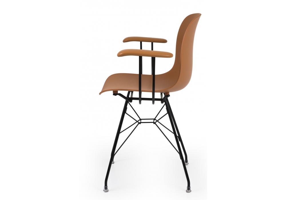 Troy Wireframe diseñada por Marcel Wanders para Magis es una silla con reposabrazos y asiento en polipropileno, en diferentes colores. Estructura en varilla de acero dorado, cobrizado o pintado.