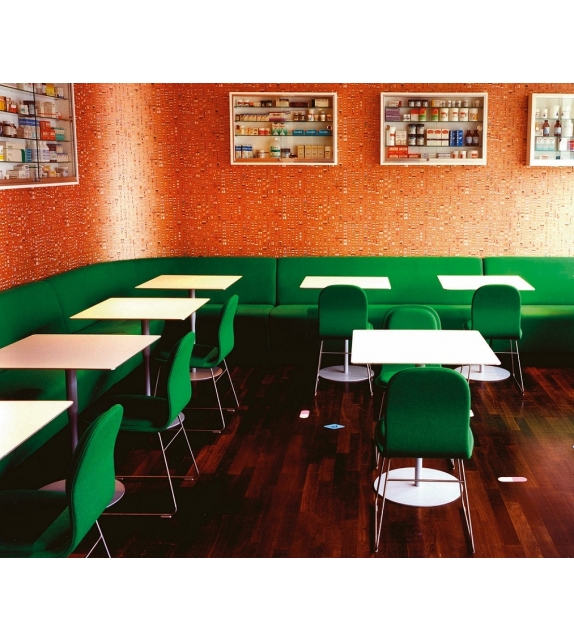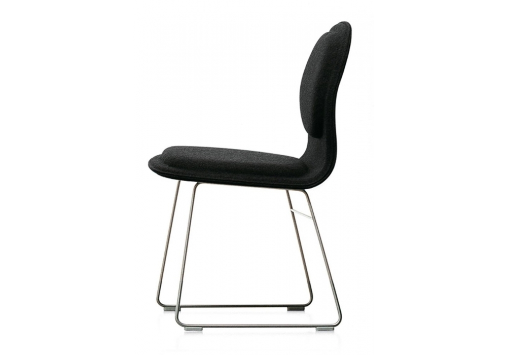 Hi Pad diseñada por Jasper Morrison para Cappellini es una silla realizada con carcasa de madera revestida en tela o cuero y base de acero. Disponible en diferentes acabados.