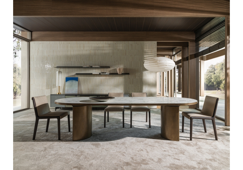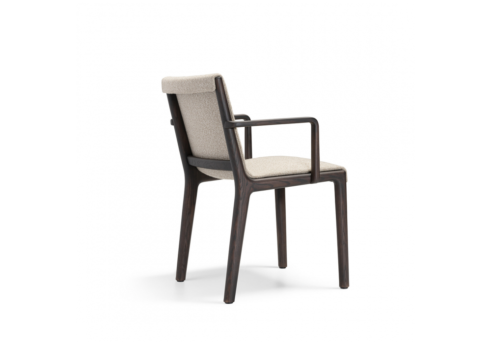 Janet diseñada por Vincent Van Duysen para Molteni&C es una silla con o sin apoyabrazos realizada con estructura en madera maciza teñida y tapizado en tejido o piel.