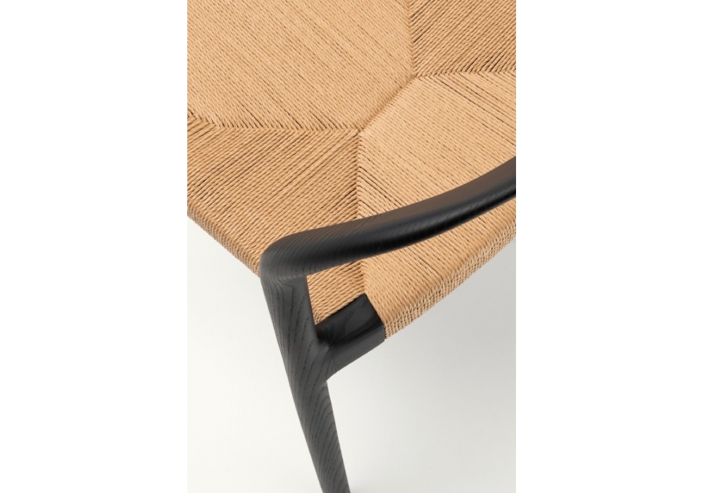Ticino diseñada por Shibuleru para Living Divani es una silla con estructura en fresno macizo, con refuerzos de esquina de chapa acero, disponible en acabados color natural y antracita, con asiento encordado en cuerda de celulosa.
