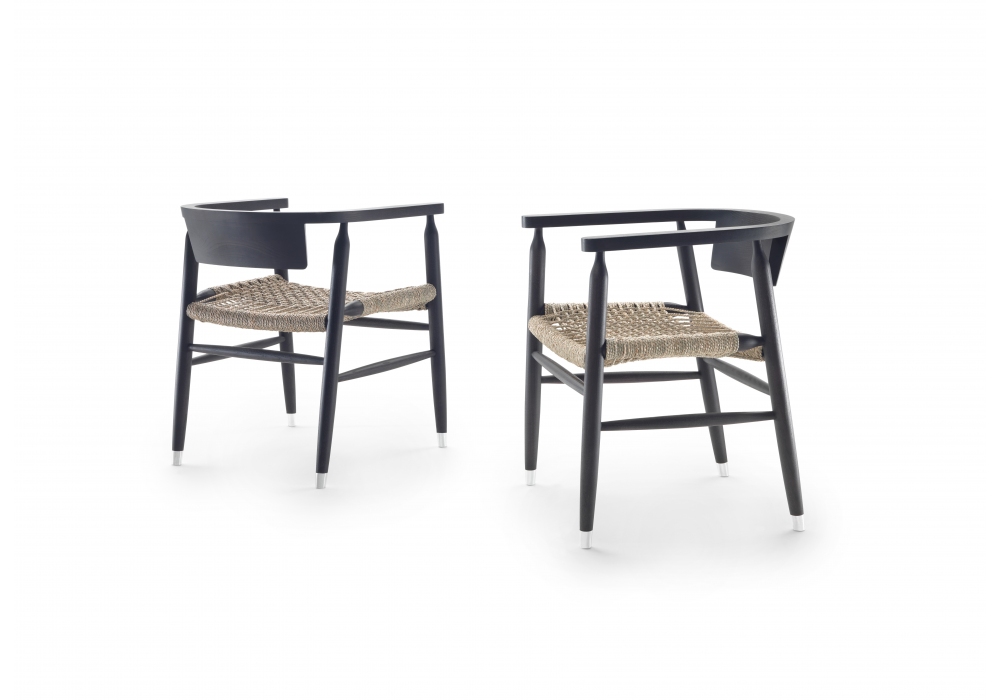Doris diseñada por Antonio Citterio para Flexform es una silla realizada en madera maciza de fresno. El asiento es de paja de río torcida a mano y los pies son de zamak fundido a presión.