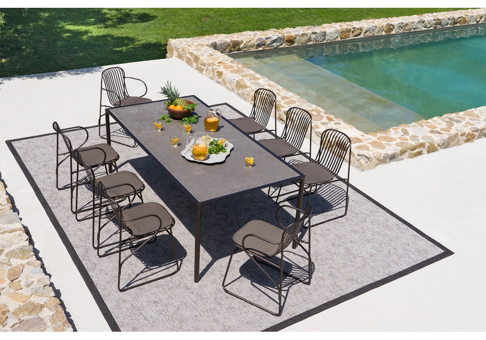 Riviera diseñada por Lucidi / Pevere para EMU es una silla de acero cuya característica principal es un signo gráfico minimalista y refinado, se adapta naturalmente a cualquier entorno tanto interior como exterior. Disponible en diferentes acabados.