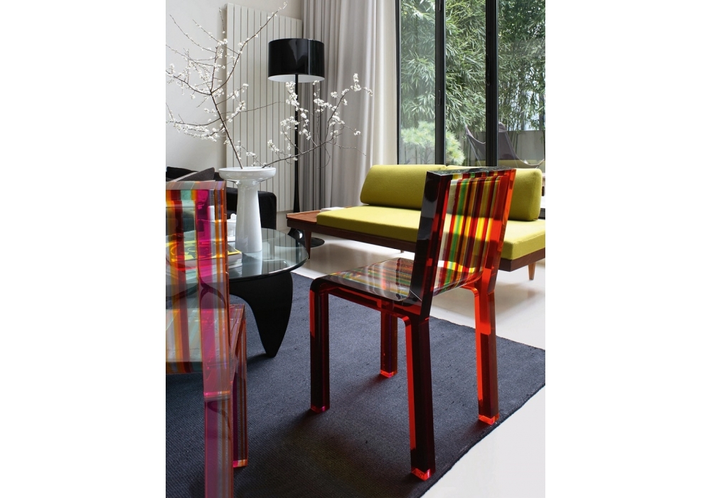 Rainbow Chair diseñada por Patrick Norguet para Cappellini es una silla fabricada en metacrilato, formada por placas de diferente color y grosor pegadas entre sí por ultrasonidos.