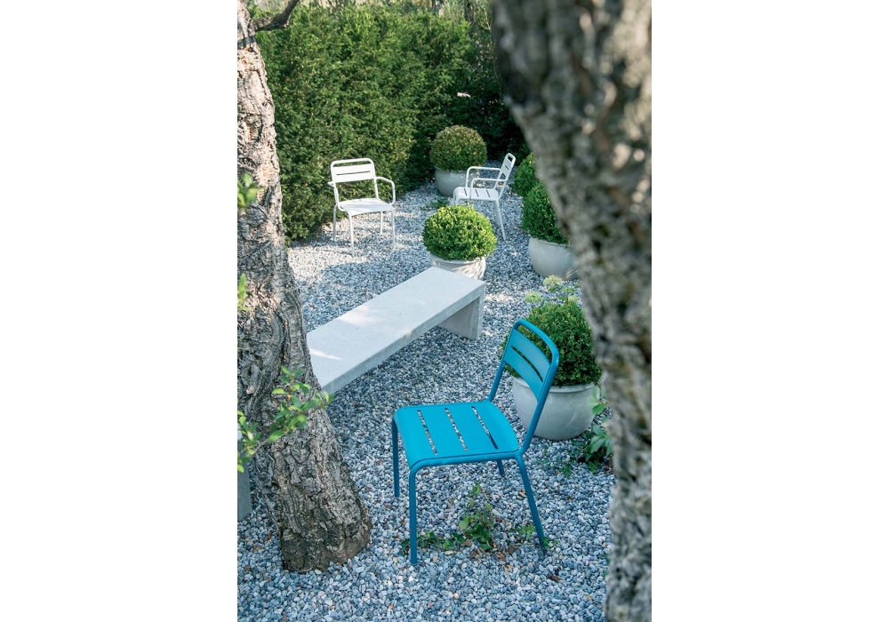 Star diseñada por EMU es una silla de jardín colorida e informal fabricada íntegramente en aluminio, lo que la hace perfecta para contextos marinos. Disponible en diferentes acabados.